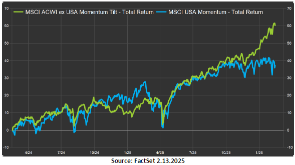 On a separate note, international stocks have also performed extraordinarily well, particularly when compared to US stocks. That said, international stocks have become increasingly undervalued relative to US stocks and have only outperformed US stocks twice in the last 10 years (2017 and 2025), and in 2017, it only outgained the US by 3% (38% vs. 35%). The chart below shows US vs. international stock markets over the past 2 years. Note that this does not suggest running out to buy international stocks, but serves as a fresh reminder of the importance of portfolio diversification.